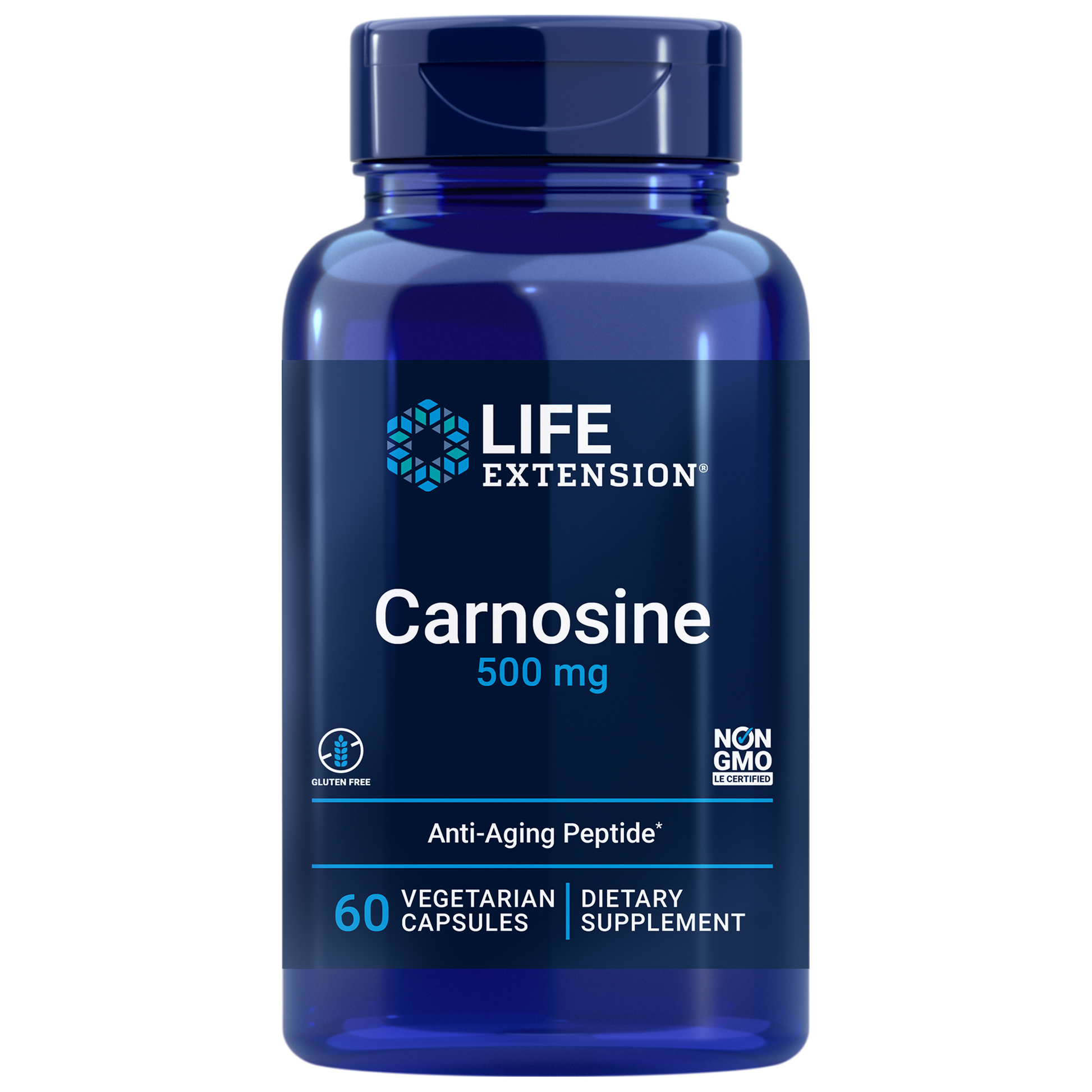 Life Extension's anti-aging supplement contains 500 mg of carnosine, a naturally occurring antioxidant, to support healthy aging and exercise recovery and to inhibit glycation, which contributes to wrinkled skin.