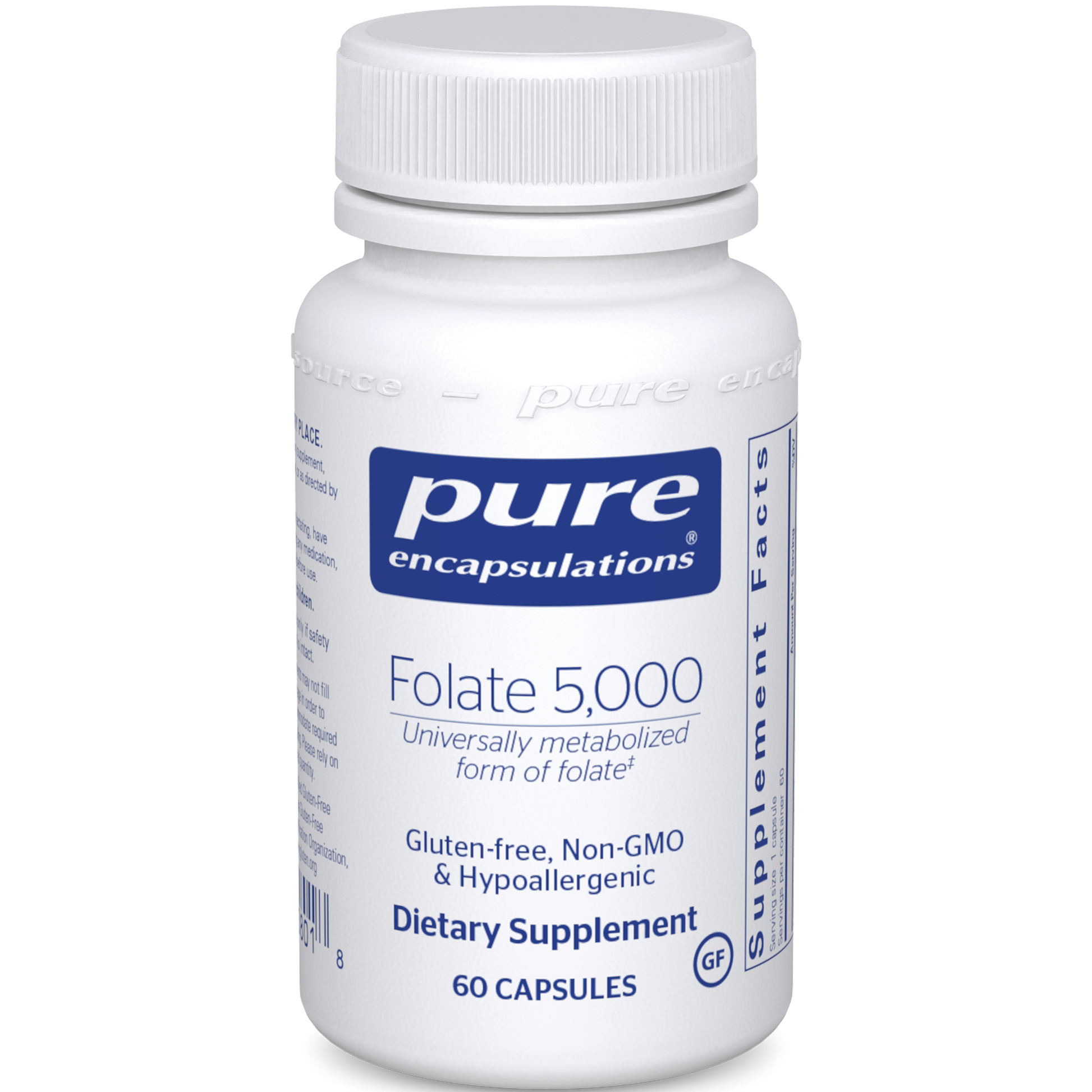 Folate 5,000 provides 5,000 mcg of folate as 5-methyltetrahydrofolate (5-MTHF), the universally metabolized and biologically active form of folate.*