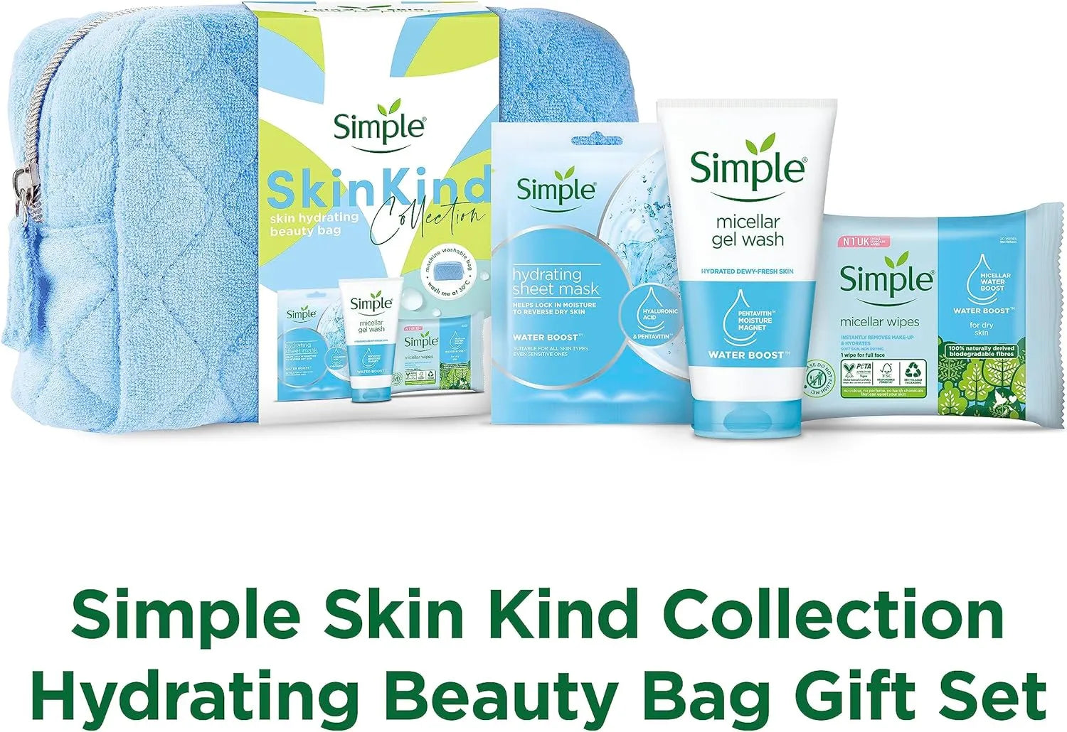 Get Glowing with Simple Skin Kind Hydrating Beauty Bag Gift Set | Skin Care Gifts for Her | Machine-Washable Bag | 3-Piece Set