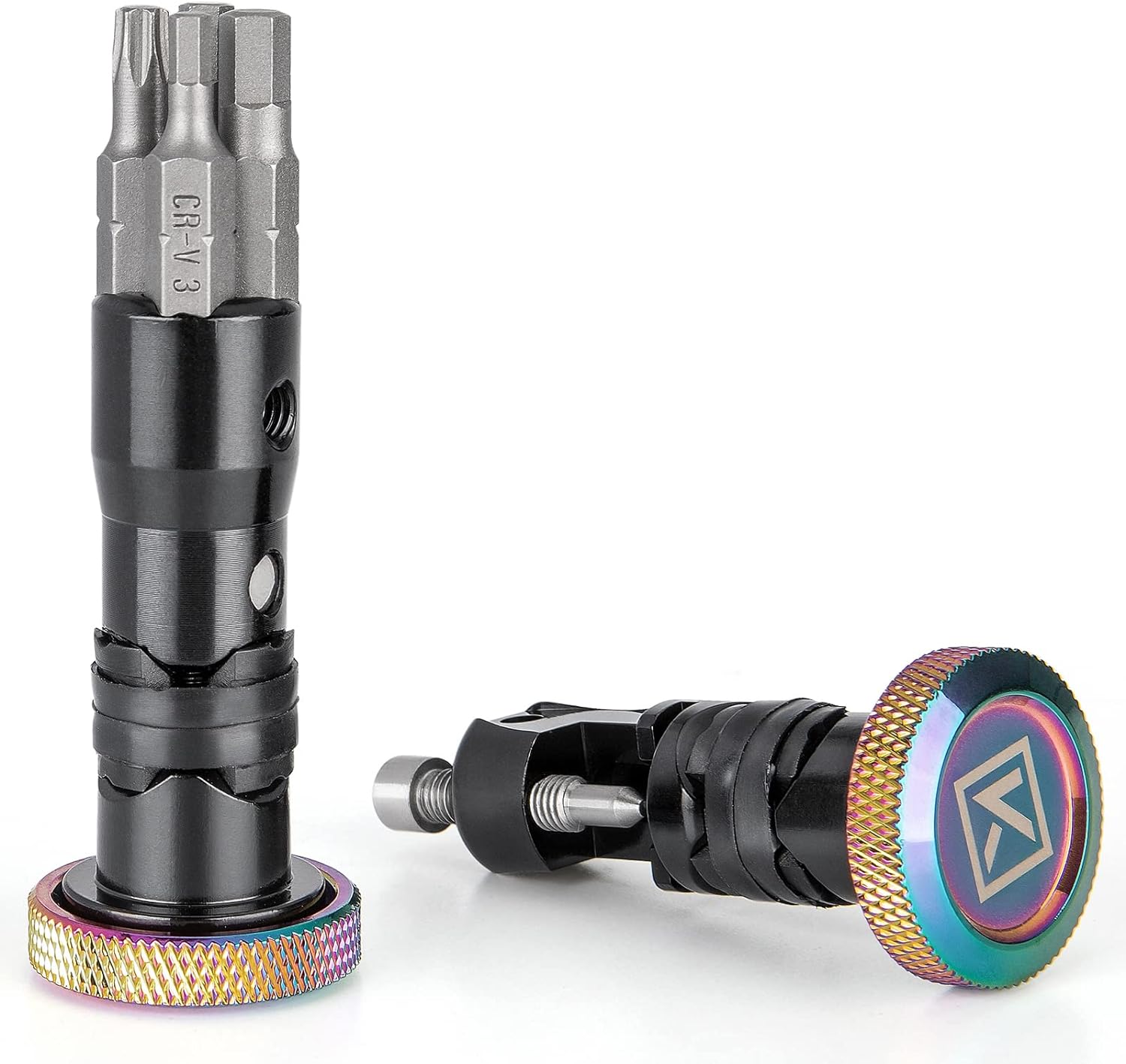 【Handlebar End Cap Multi-Tools】: The tool system is designed to be concealed inside your handlebars until needed. Chain breaker on one side, TORX T25 and HEX wrench 3/4/5mm on the other. Chain tool is compatible with 9 through 12-speed chains. Requires 4mm hex for chain tool driver which can be found in other side.