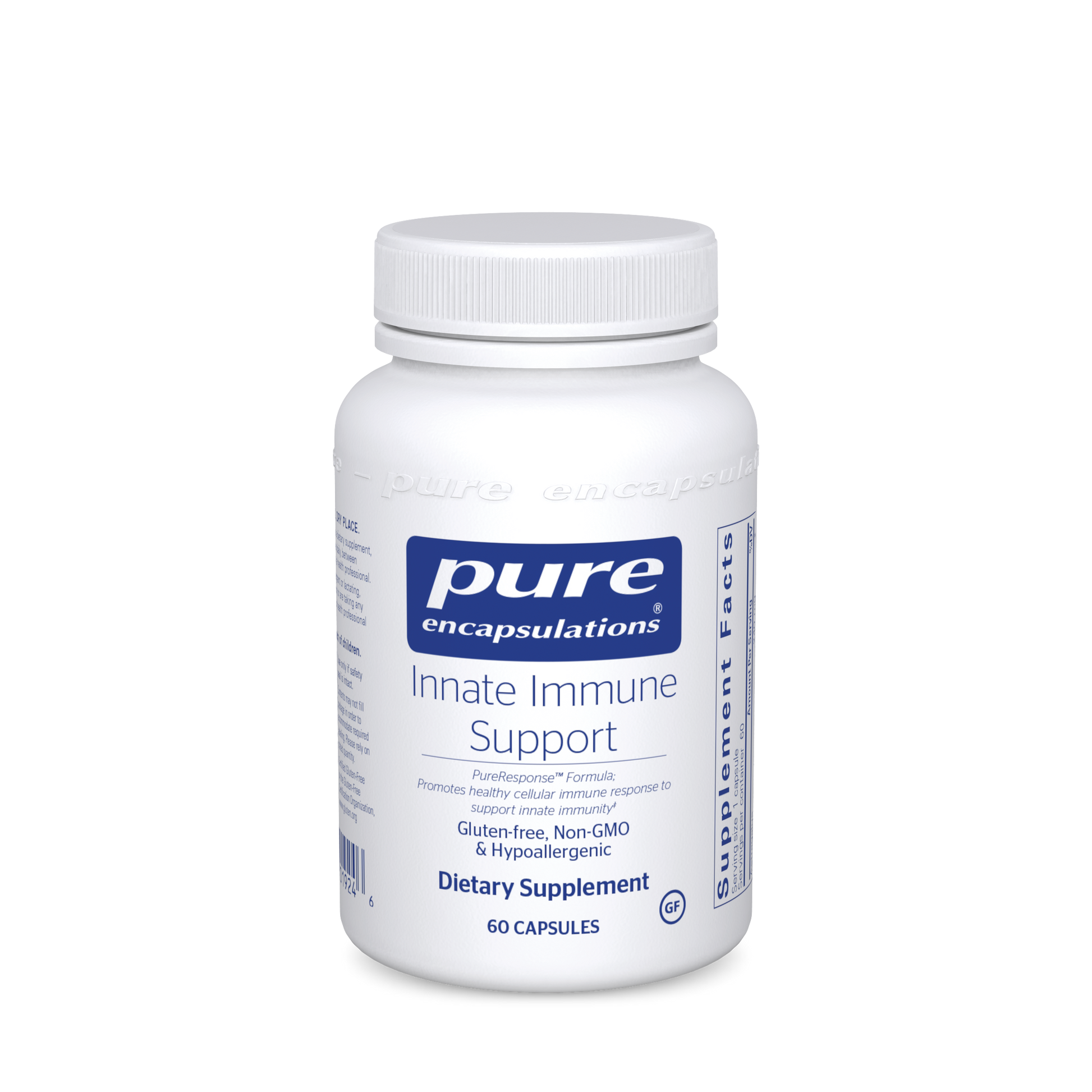 The PureResponse™ formula Innate Immune Support is designed to promote cell- mediated immune response, including NK cell and macrophage activity. Innate Immune Support may be indicated for enhancement of natural defenses and mucosal health. Astragalus contains a variety of active constituents, including saponins and flavonoids, that contribute to its long tradition of immune and cytokine balance support. In vitro and animal studies suggest that astragalus supports NK cell activity, as well as IgA and IgG levels in serum, key antibodies that play a critical role in mucosal immune defense. The formula also includes clinically researched andrographis extract standardized for andrographolide and other bioactive diterpene lactones. Each batch is biologically standardized using the lipoxygenase inhibition assay to ensure efficacy. In a randomized, double-blind, placebo-controlled study, supplementation with 200 mg of AP-Bio® Andrographis for five days promoted immune function and supported respiratory comfort. In vitro assays suggest it helps modulate IL-1, IL-6 and MCP-1 to support macrophage function. Reishi mushroom offers a rich source of polysaccharides to promote cell-mediated immunity. The formula includes both reishi mushroom extract and a unique, highly-purified, reishi mushroom-derived beta 1,3/1,6-D glucan extract.*