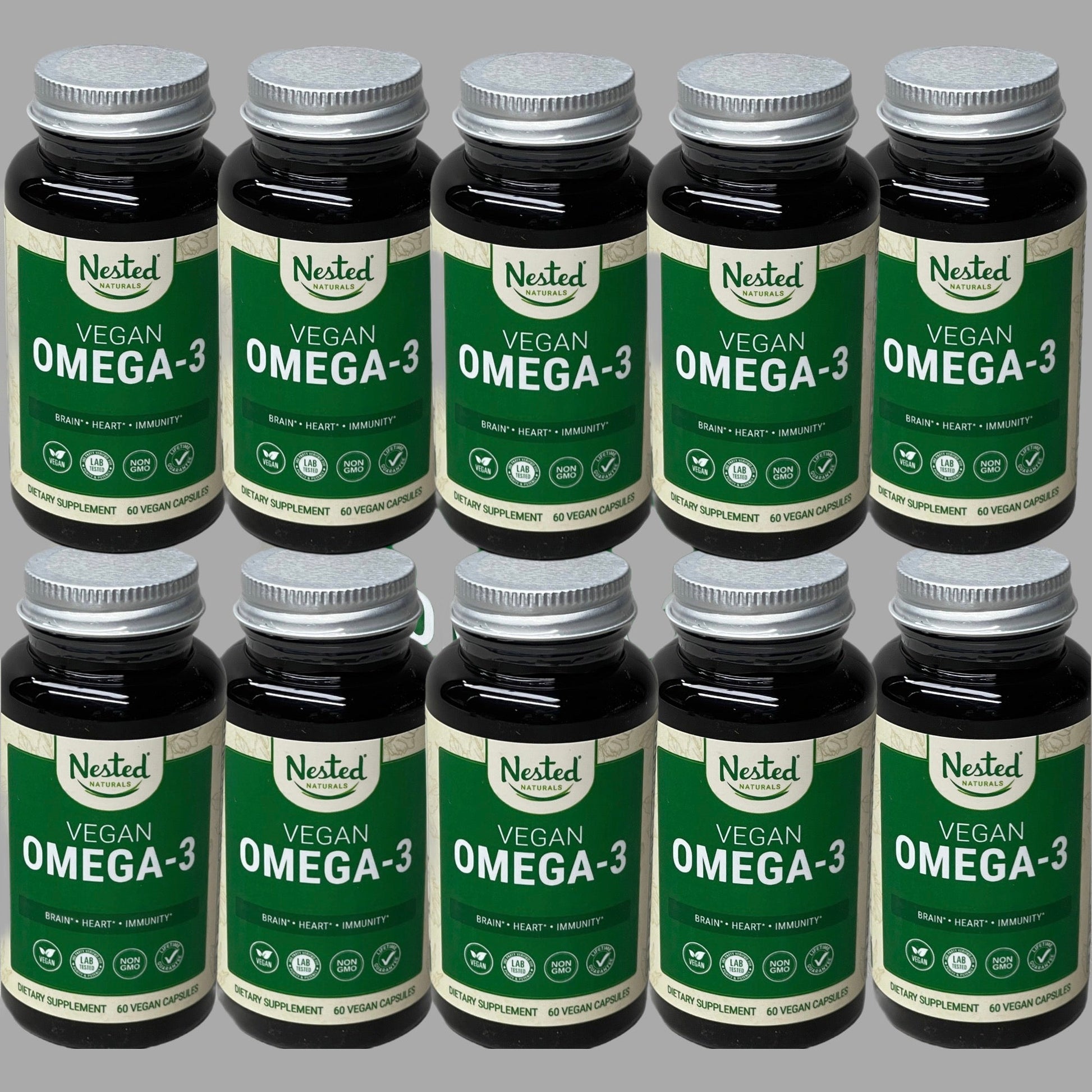 NESTED NATURALS Lot of 10! Vegan Omega 3 & 6 DHA Supplement (Heart, Brain, Joint) 60 Capsules 01/24 (New Other)
