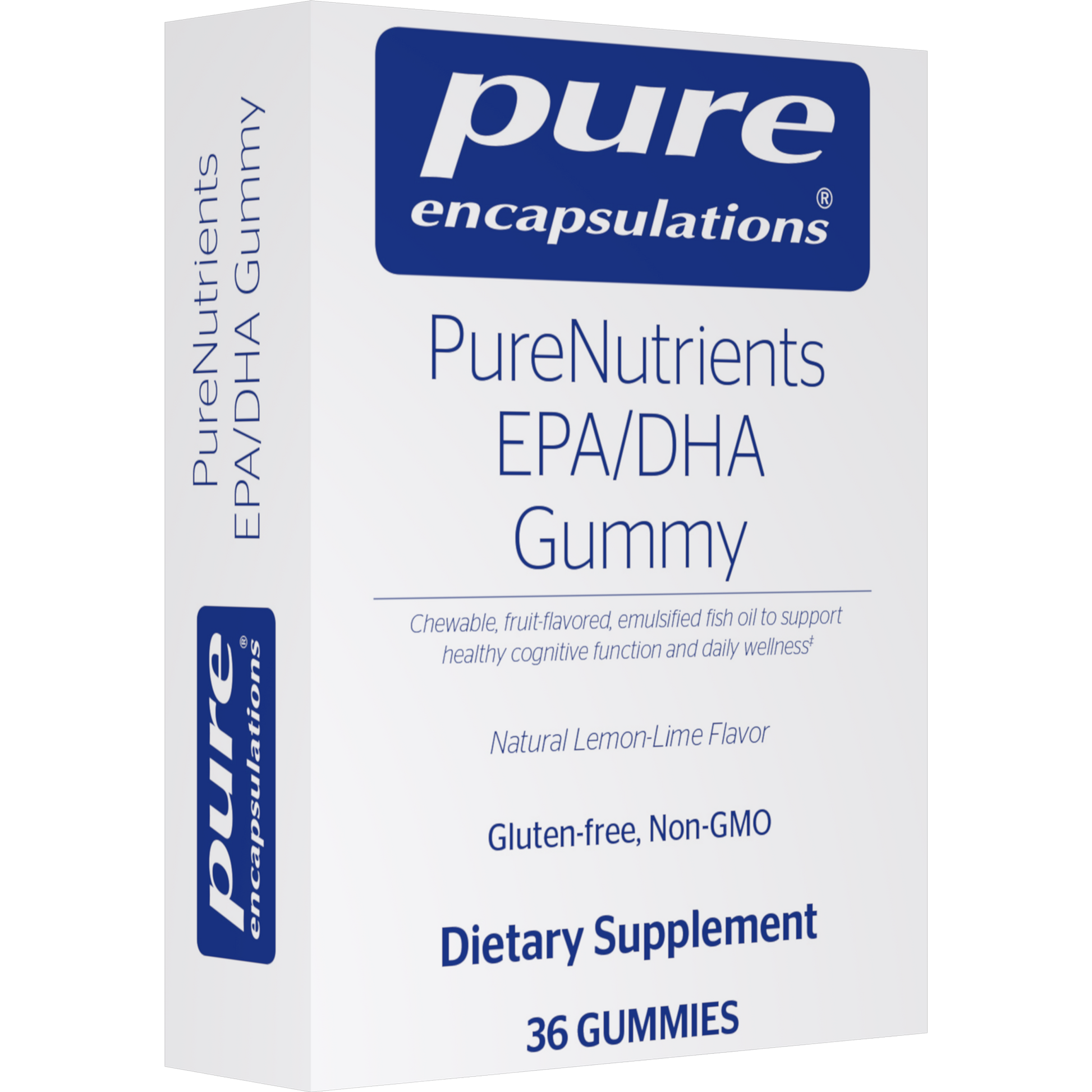 PureNutrients EPA/DHA Gummy is a unique fish oil emulsion offering enhanced-absorption omega-3 essential fatty acids in a convenient, lemon-lime flavored soft chew. The emulsification process surrounds the essential fatty acids in a water-soluble matrix, enhancing the bioavailability and absorption. Fish oil supports healthy cellular membrane function, cytokine balance, and blood flow to promote cognitive and neuronal health, emotional well-being, vision, and cardiovascular function. Docosahexaenoic acid (DHA), an omega-3 long-chain polyunsaturated fatty acid, is a component of neuronal cellular membranes and supports healthy neurotransmission and brain function, as well as vision. A randomized, double-blind study suggested that 4-year-olds born to mothers who had taken fish oil had healthy cognitive function.*