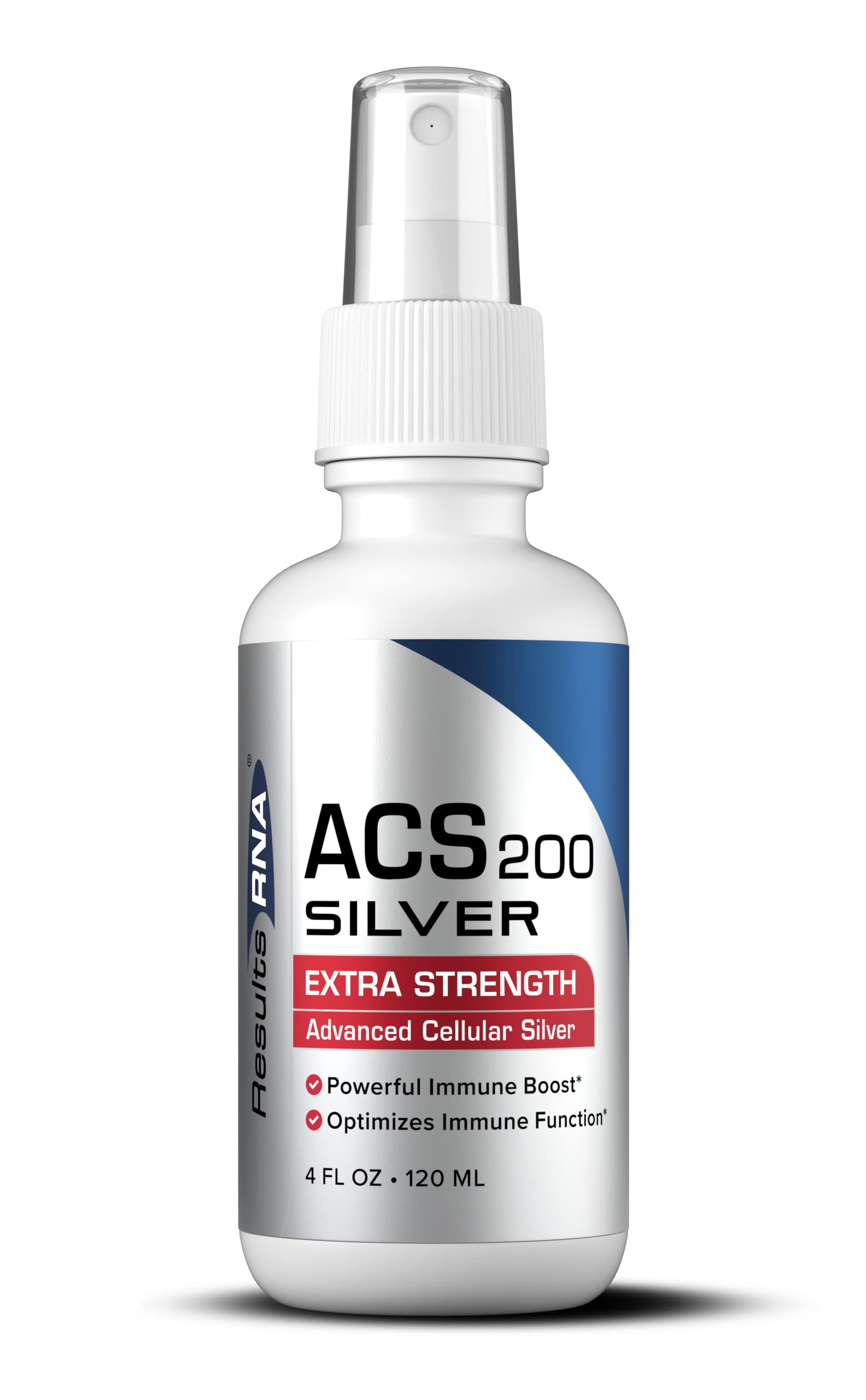 Details: 4 Ounce SUPPLEMENT FACTS / DOSAGE GUIDELINES Maintenance Dose: Take 5 sprays by mouth 2 to 3 times daily as serving size Serving Size: 5 sprays; 5.9 mg sub-micronized Clinoptilolite zeolite per serving Higher Dose: Take 10 sprays by mouth 4 times daily Ingredients: ACS 200 Advanced Cellular Silver Extra Strength: Silver 175 mcg and Nano Distilled Water WARNING: Do not contaminate or touch fluid in bottle. Do not eat or drink for 2 minutes following a dose. You may take other Results RNA formulas immediately Take ACS 200 as recommended by your Health Care Practitioner Purity and Quality Guaranteed: ACS 200 is produced under strict GMP manufacturing controls in conformance with guidelines for dietary supplements set forth in USP XXVII. For purity and quality, ACS 200 contains no preservatives no alcohol no artificial coloring or flavoring. For Best Results: Take ACZ nano Extra Strength and ACS 200 Extra Strength daily to maintain optimal health and total body detoxification. Shake bottle before using