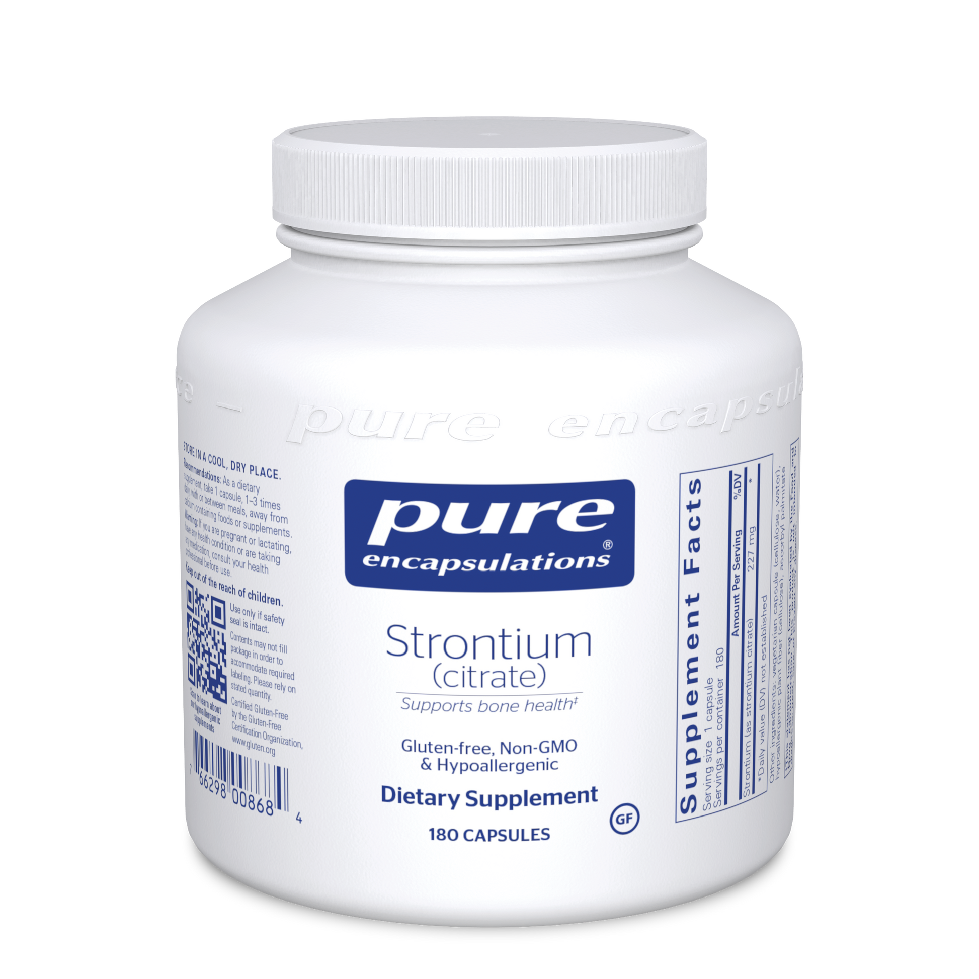 The trace mineral strontium supports healthy osteoblast differentiation, osteoblast collagen formation and balanced osteoclast activity, maintaining bone tensile strength. In two separate clinical trials involving a total of more than 2,000 women, strontium supplementation supported healthy vertebrae integrity and composition.