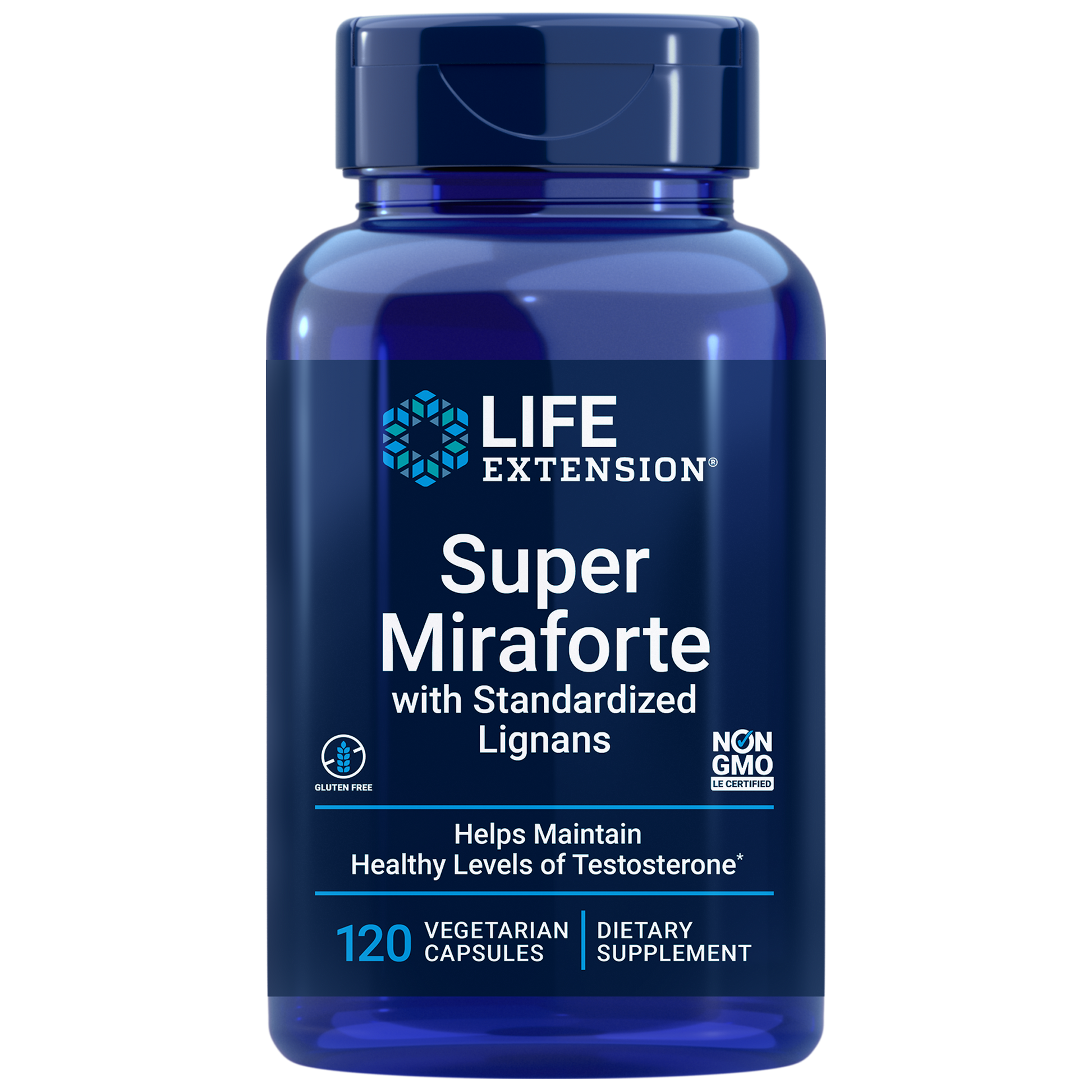 Super Miraforte with Standardized Lignans supports healthy levels of free testosterone and overall male health with potent minerals and extracts including chrysin, nettle root, Muira puama and more.