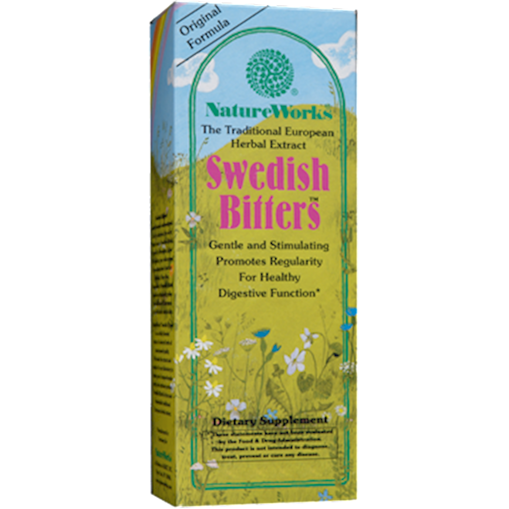 NatureWorks Swedish Bitters is an artfully blended extract of selected herbs of unsurpassed quality. NatureWorks make the extract and analyze it in their laboratory to assure you of unquistionable purity and optimum potency. Swedish Bitters is the most remarkable traditional European herbal extract.