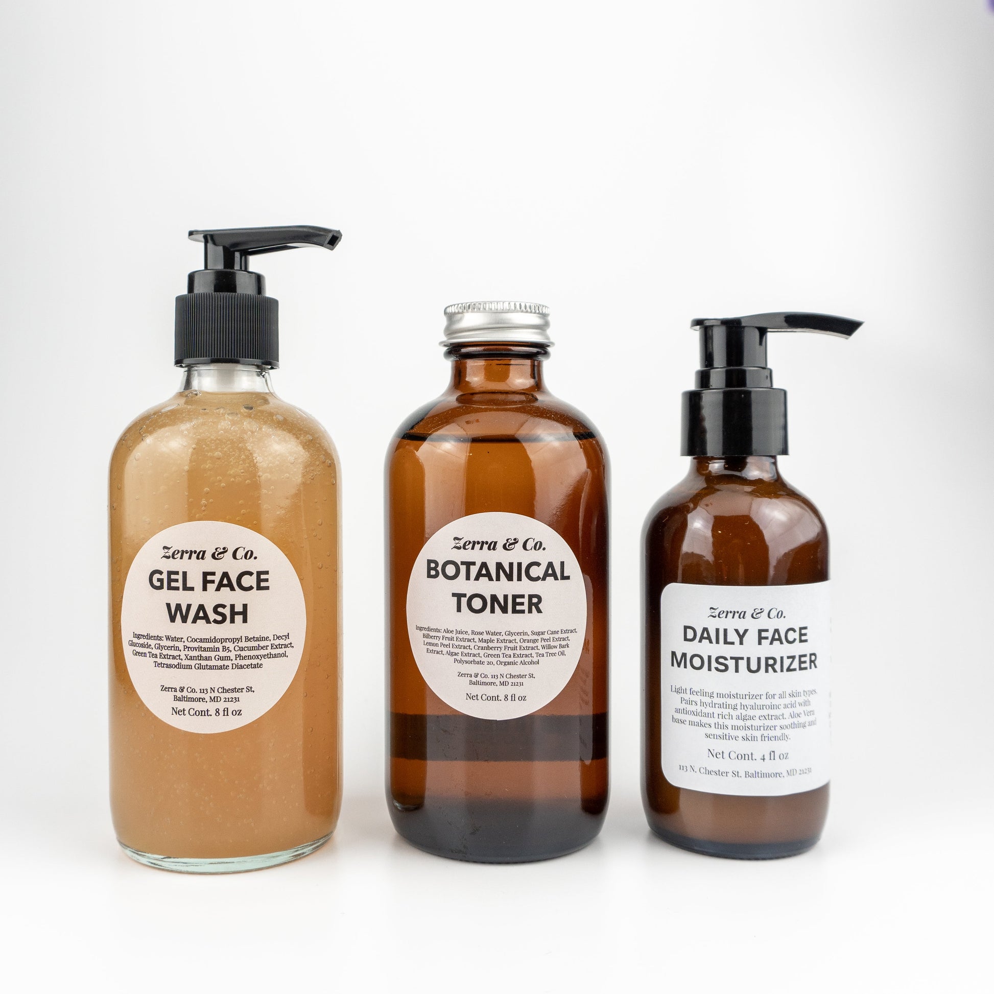 The Routine is a skincare routine formulated for all skin types with sensitive skin in mind. A simple three step routine makes taking care of your skin a breeze. It's as simple as cleanse, tone, and then moisturize. The best part? The only plastic is the pumps, which can be reused over and over when you purchase our skincare refills!